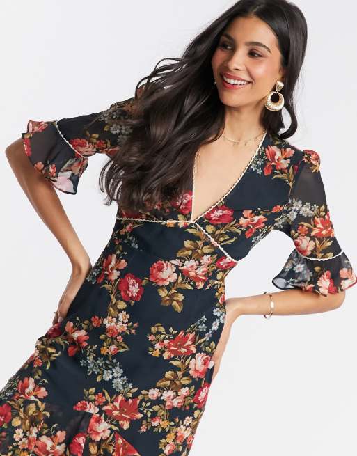 Hope and ivy fluted sleeve sale midi with cut out