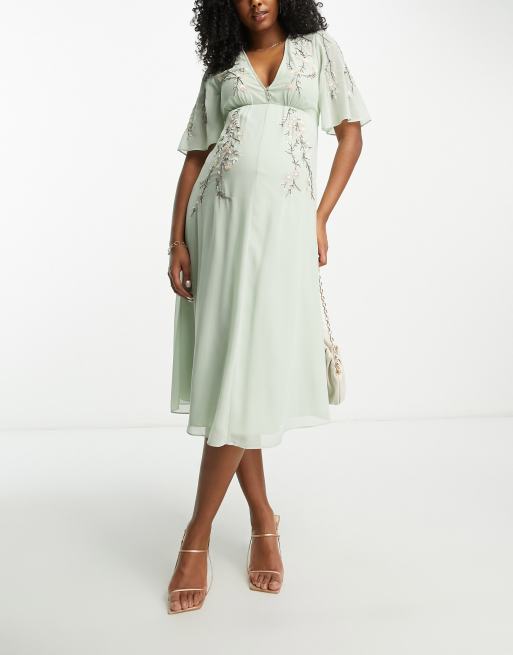 Product Item: Hope and ivy fluted sleeve sale midi with cut out